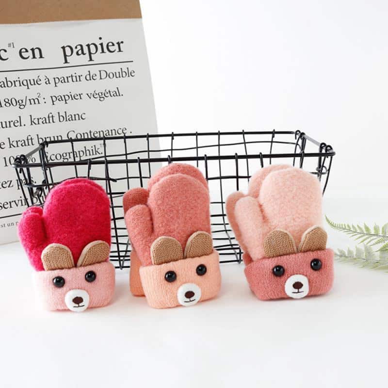 Los guantes de niña con estampado de ositos de dibujos animados son un accesorio imprescindible para los fríos días de invierno.