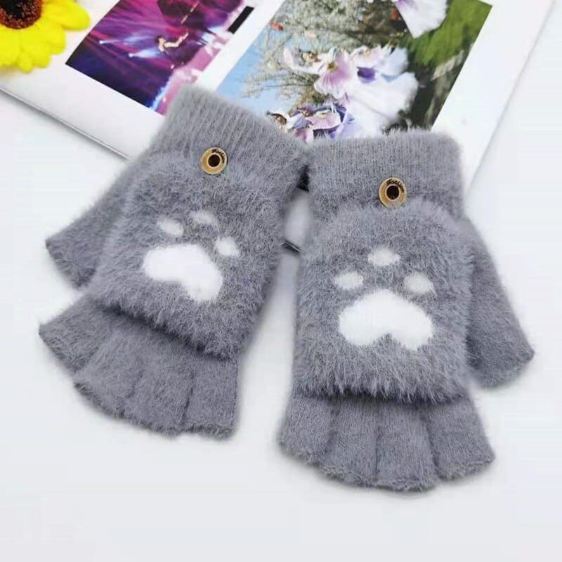 El estampado de patas de gato está impreso en la parte superior de los guantes, añadiendo un toque juguetón y divertido al conjunto.