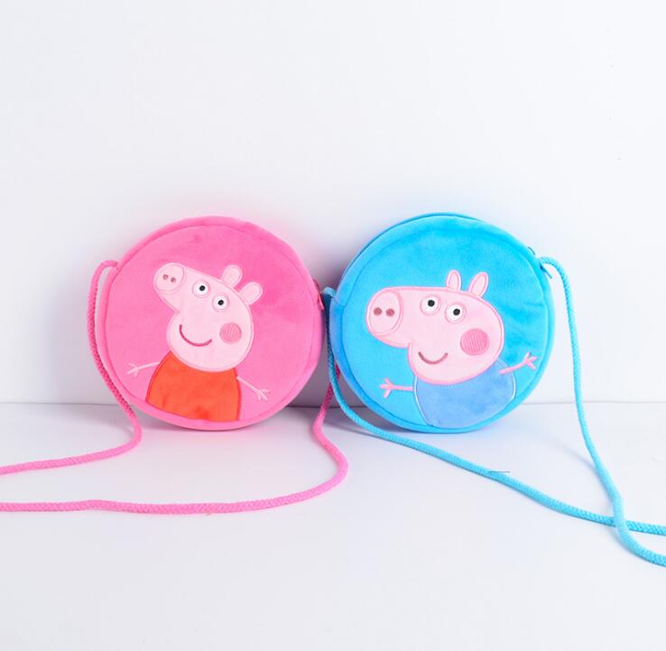Bolso redondo de peluche Peppa Pig y George para niñas rosa de moda