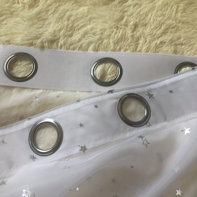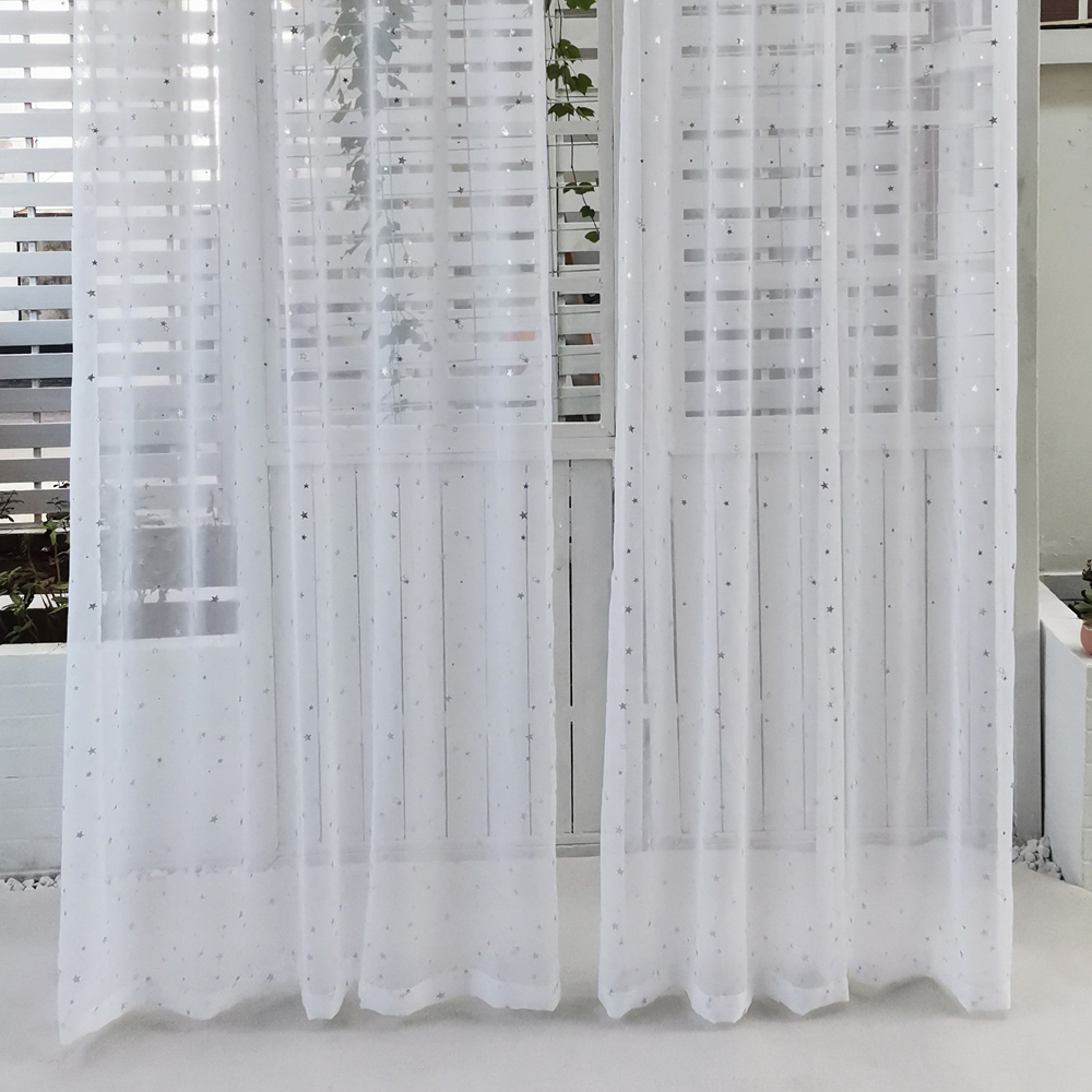 Cortina blanca de tul para dormitorio con estampado de estrellas plateadas para niñas