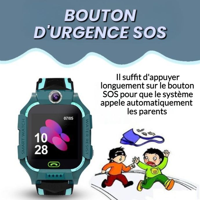 Restez connecté quoi qu’il arrive grâce à notre montre connectée élégante et innovante. Elle dispose d’un bouton SOS qui vous avertit immédiatement au moindre problème. Que vous soyez à la maison ou en déplacement, cette montre vous avertira si votre enfant a un problème, il lui suffira d’appuyer longuement sur le bouton d’urgence pour vous alerter.