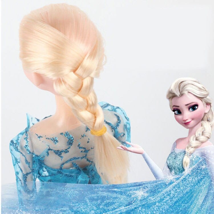 La muñeca Elsa va vestida con su precioso vestido azul centelleante, que recuerda al hielo y la nieve que tanto aprecia. Su largo pelo rubio está recogido en una elegante trenza, que añade un toque de gracia a su regia apariencia. Con sus chispeantes ojos azules y su dulce sonrisa, Elsa está lista para llevar a los niños a vivir mágicas aventuras en el reino de Arendelle.