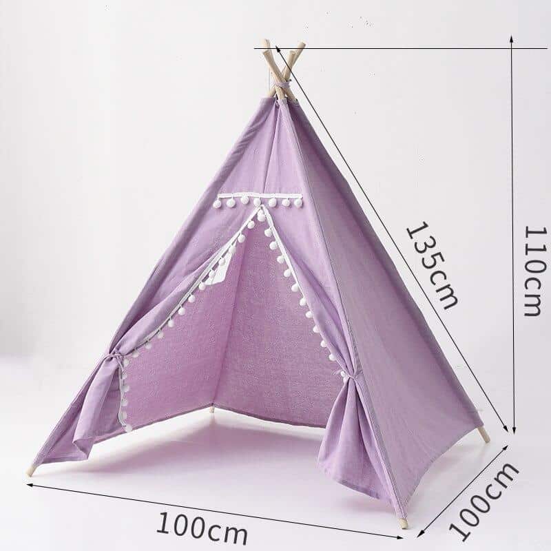 Tienda tipi india de color púrpura para niños sobre fondo blanco