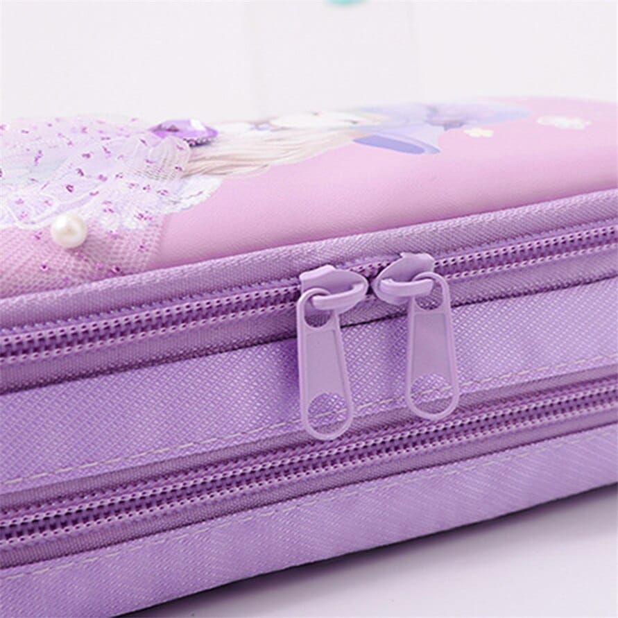 Al abrir este estuche, encontrará un gran bolsillo principal en el que podrá guardar la mayoría de los materiales sueltos de escritura y arte. También hay un segundo compartimento que puede guardar más materiales o utilizarse para un almacenamiento más organizado, gracias a sus gomas elásticas que mantienen los objetos firmemente en su sitio. La gran cremallera garantiza que todo permanezca en su sitio en el interior. Este estuche para lápices de niña es ligero y de tamaño reducido. No ocupa mucho espacio y puede guardarse fácilmente en el dormitorio de su hija. Puede llevarla al colegio, de excursión o de viaje.