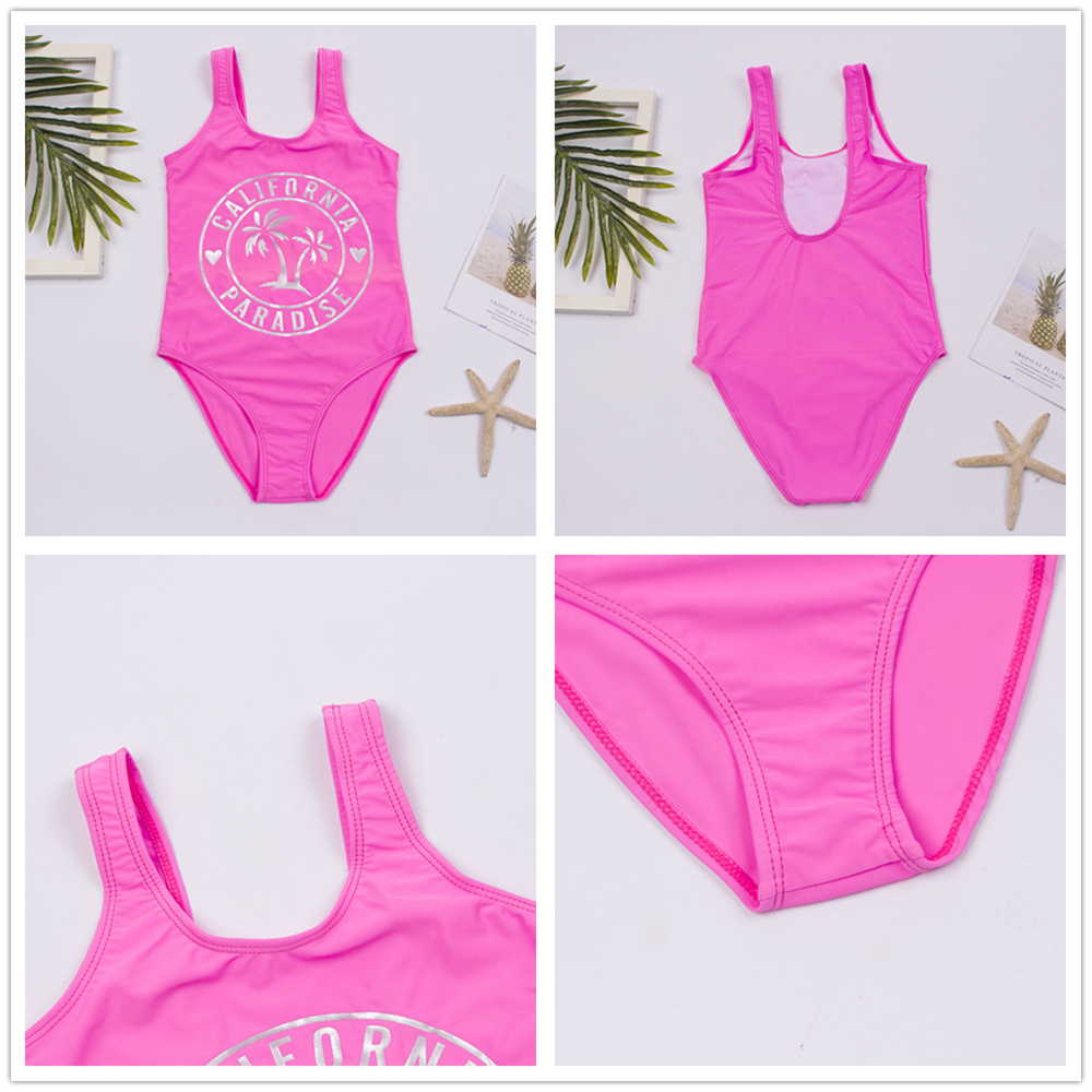 Traje de baño de una pieza rosa neón California para niñas