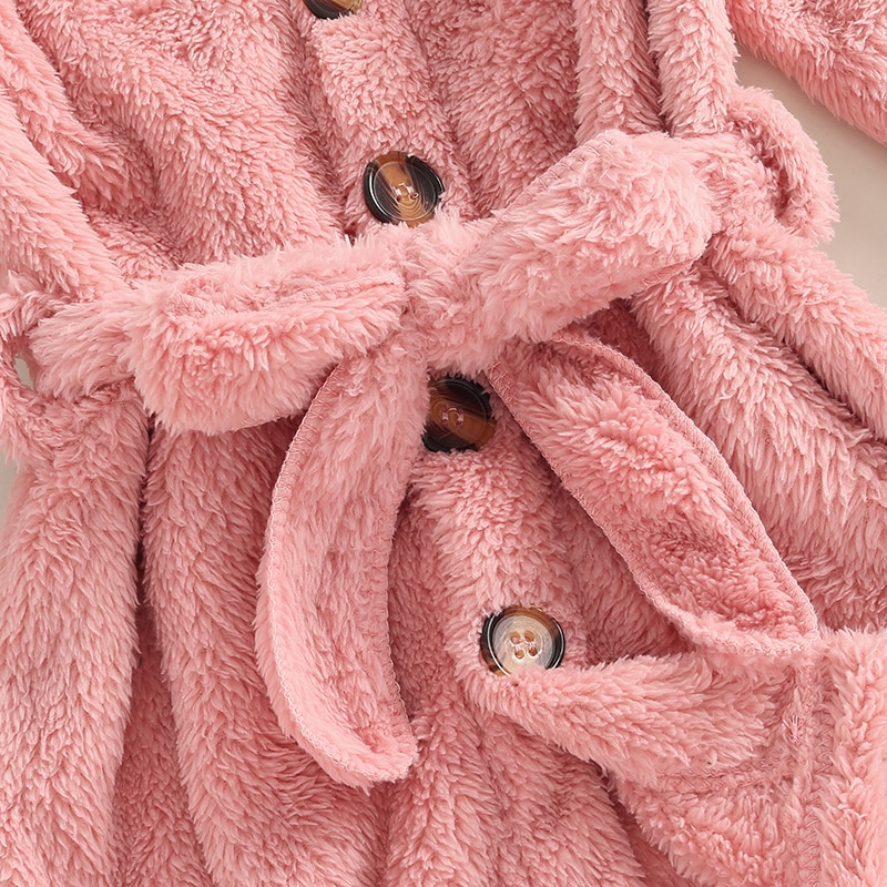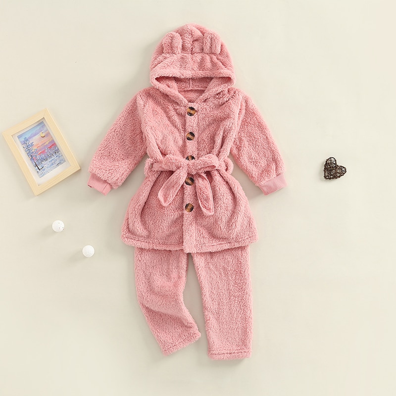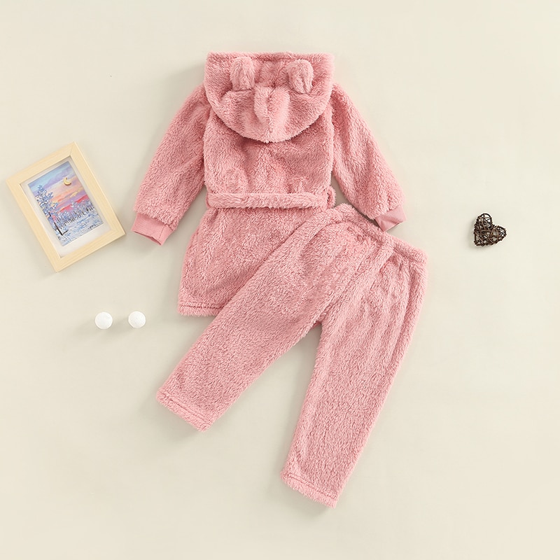 Pijama de forro polar con capucha, orejas de oso y cinturón para niña